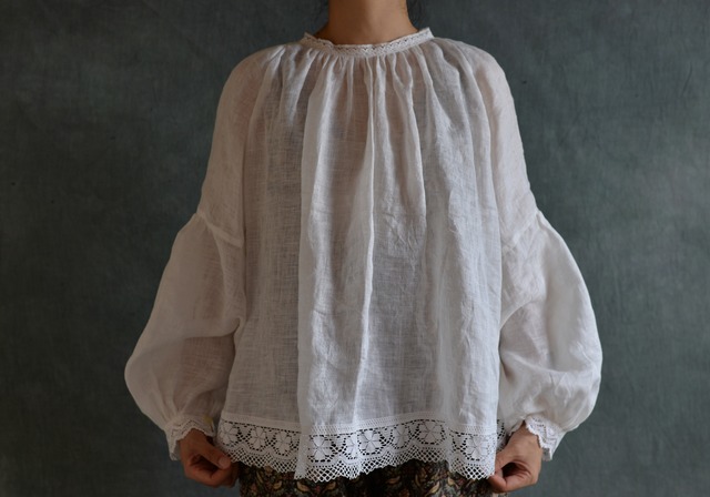✳他サイトと並行して販売しています。 一点のみのため、タイミングによっては購入手続き後でも在庫切れとなる場合がございます。 *✳*✳*✳* リネンガーゼのギャザーブラウスが仕上がりました。 襟、裾、袖口にレースを使い、 透明感のある1枚に仕上がりました。 ふんわりした作りのため、 夏は涼しく、 肌寒い時期は長袖の上に重ねて着るのもおすすめです。 ※とても繊細な素材のため負荷がかかると裂けてしまう可能性があります。着用やお洗濯の際はお気をつけください。 ※こちらのリネンには生地自体に異色糸(フシ等)が含まれる箇所がございます。 ※大変恐れ入りますが、受注製作品・完成品ともに、お客さま都合または 「仕上がりや縫製が気に入らない」等も返品が一切お受けできません。 大切にお作りしておりますが、技術の及ばない点があるため、ご迷惑をおかけしないためにもよくご理解の上お求めください ※『ご購入前に必ずご確認ください』のページを必ずご覧ください。 こちらも合わせてお読みください↓ ※ご注文の前にご必読ください https://ameblo.jp/watashi-kotori/entry-12414298245.html ※丈のサイズ表記はヌード寸法です。1~2cmの誤差が生じる場合があります。 ※ご相談(丈詰め含む)は必ず購入前にお願い致します。購入後に備考等でご相談いただいても、ご対応できません。 ご購入の時点でご了承いただいたものとさせていただきます。