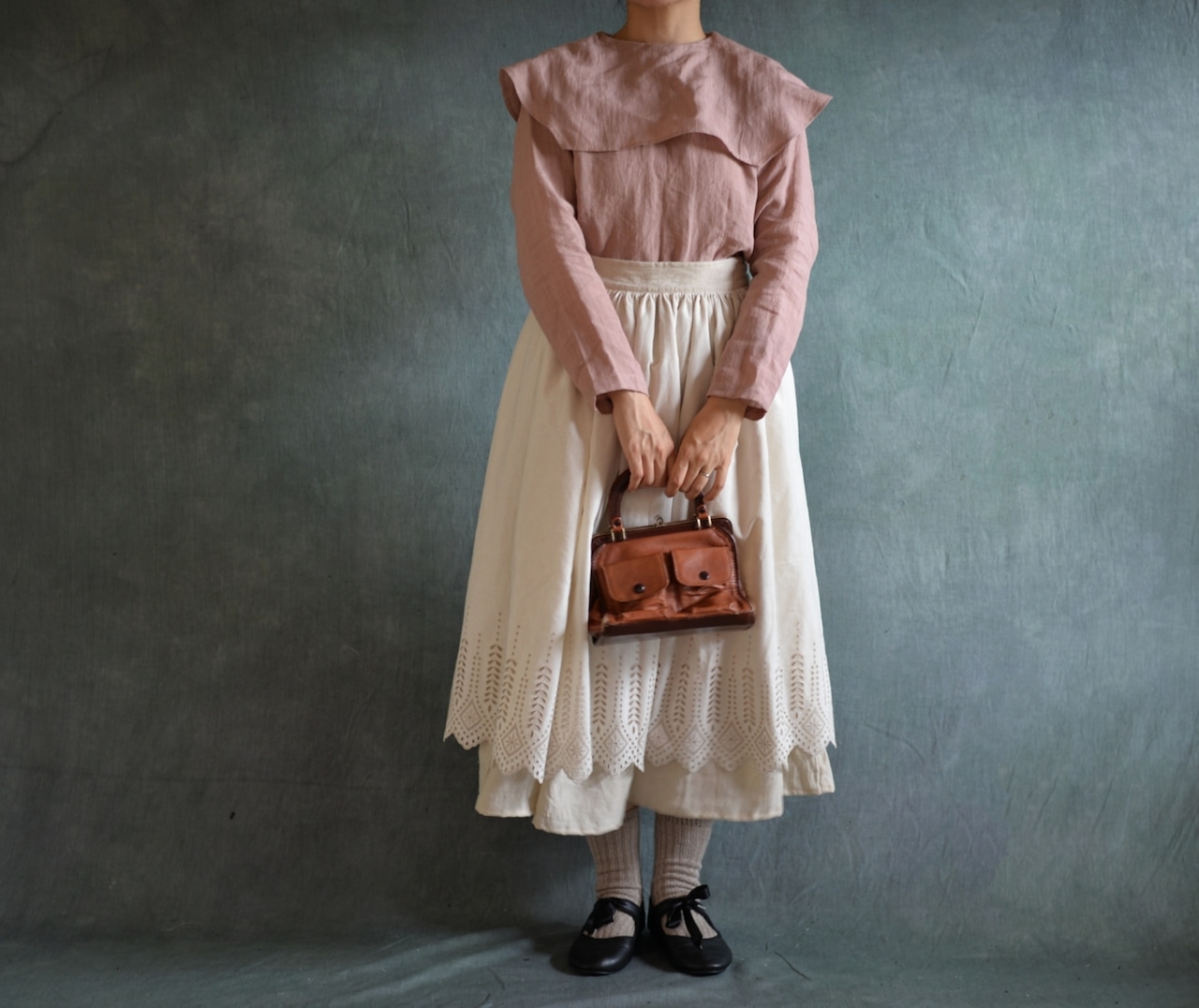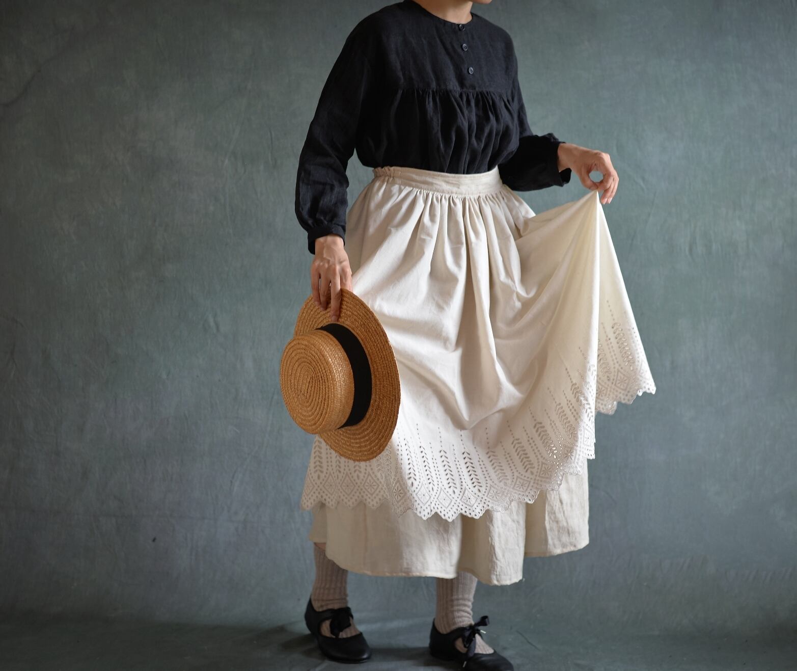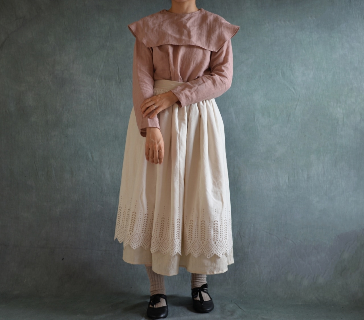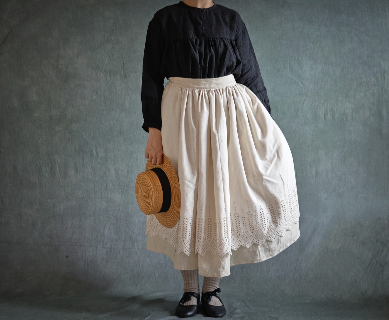 スカラップレースと天日干しリネンのスカートが仕上がりました。