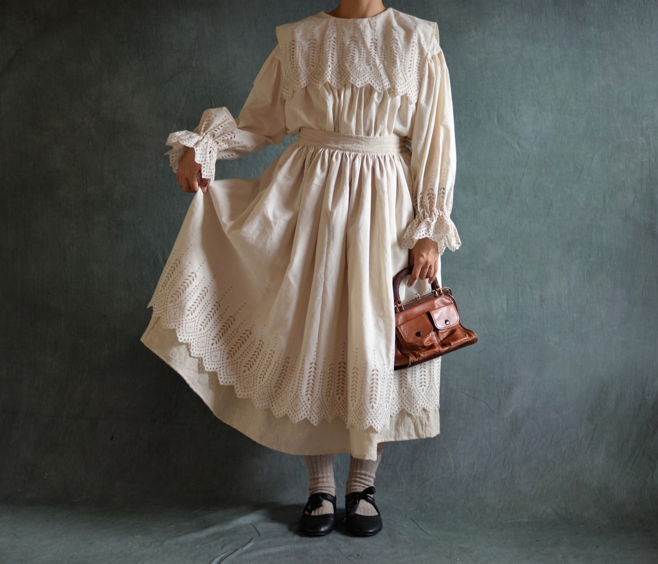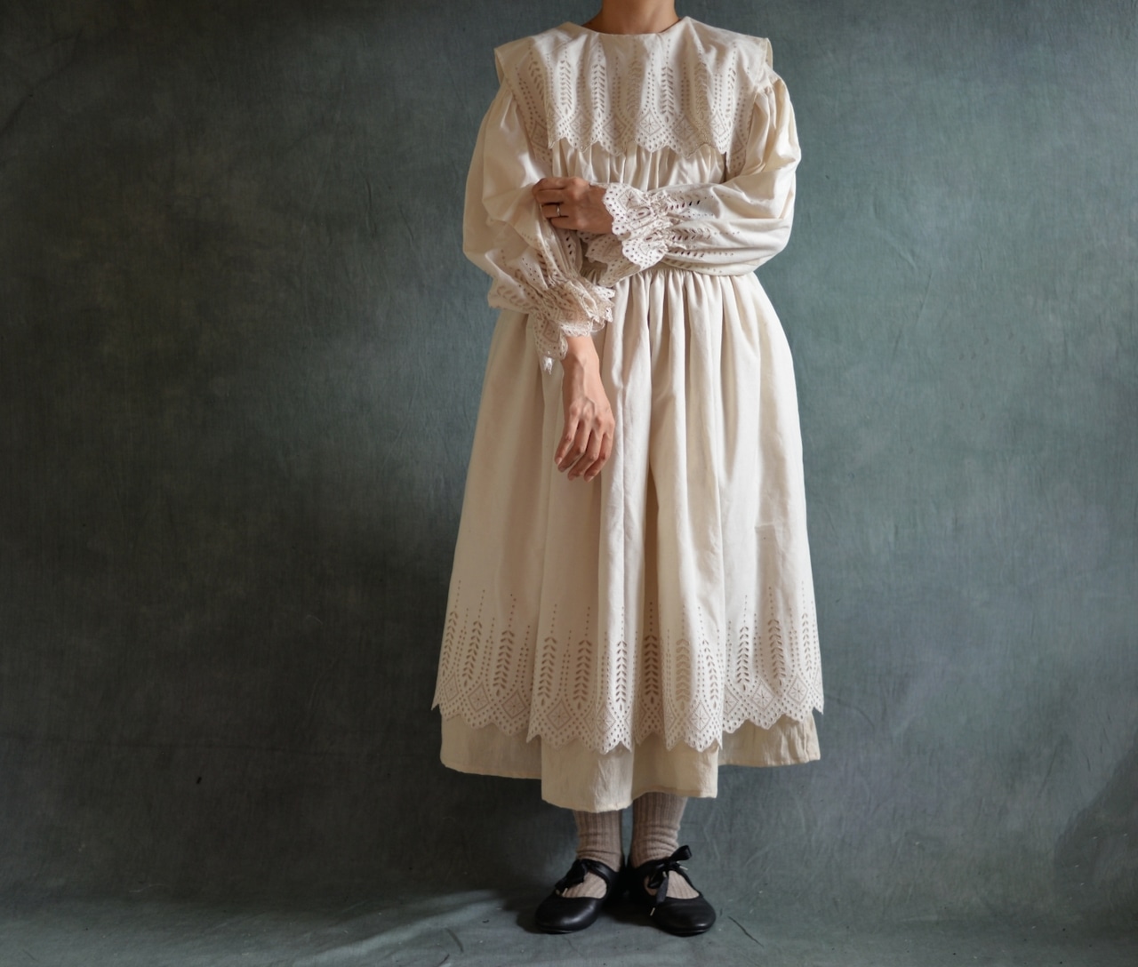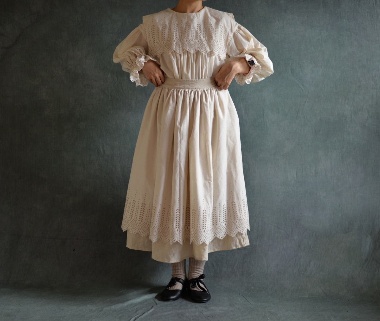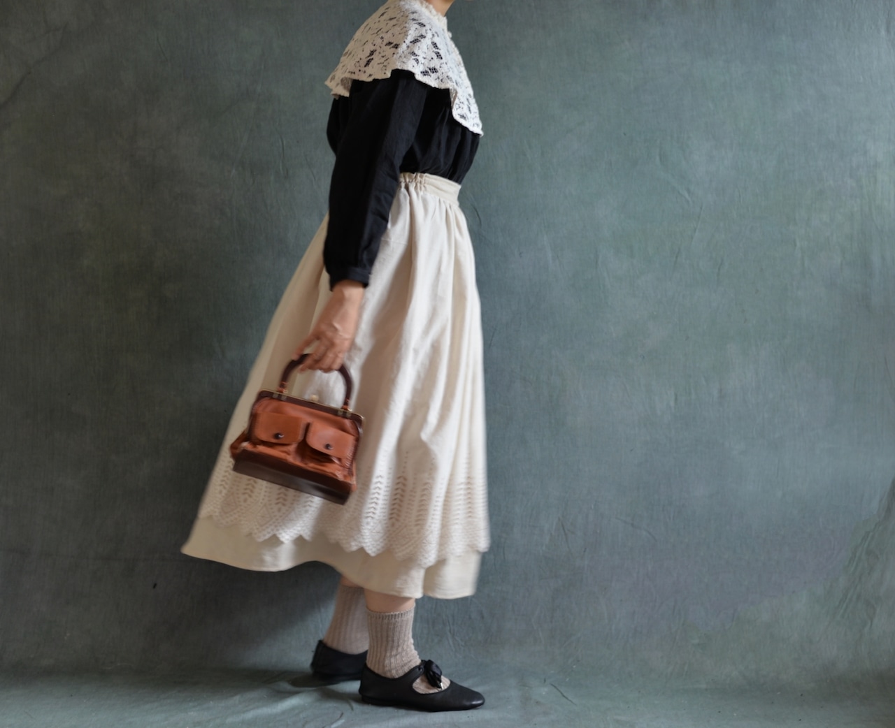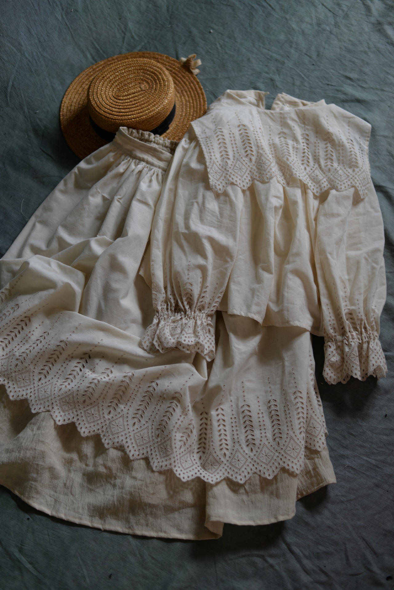 スカラップレースと天日干しリネンのスカートが仕上がりました。
