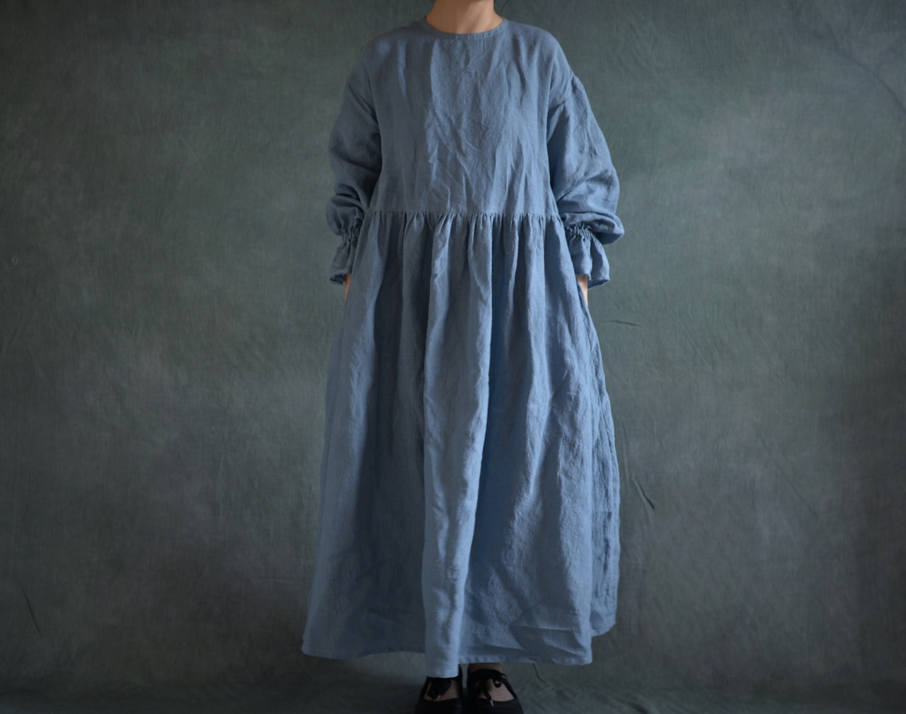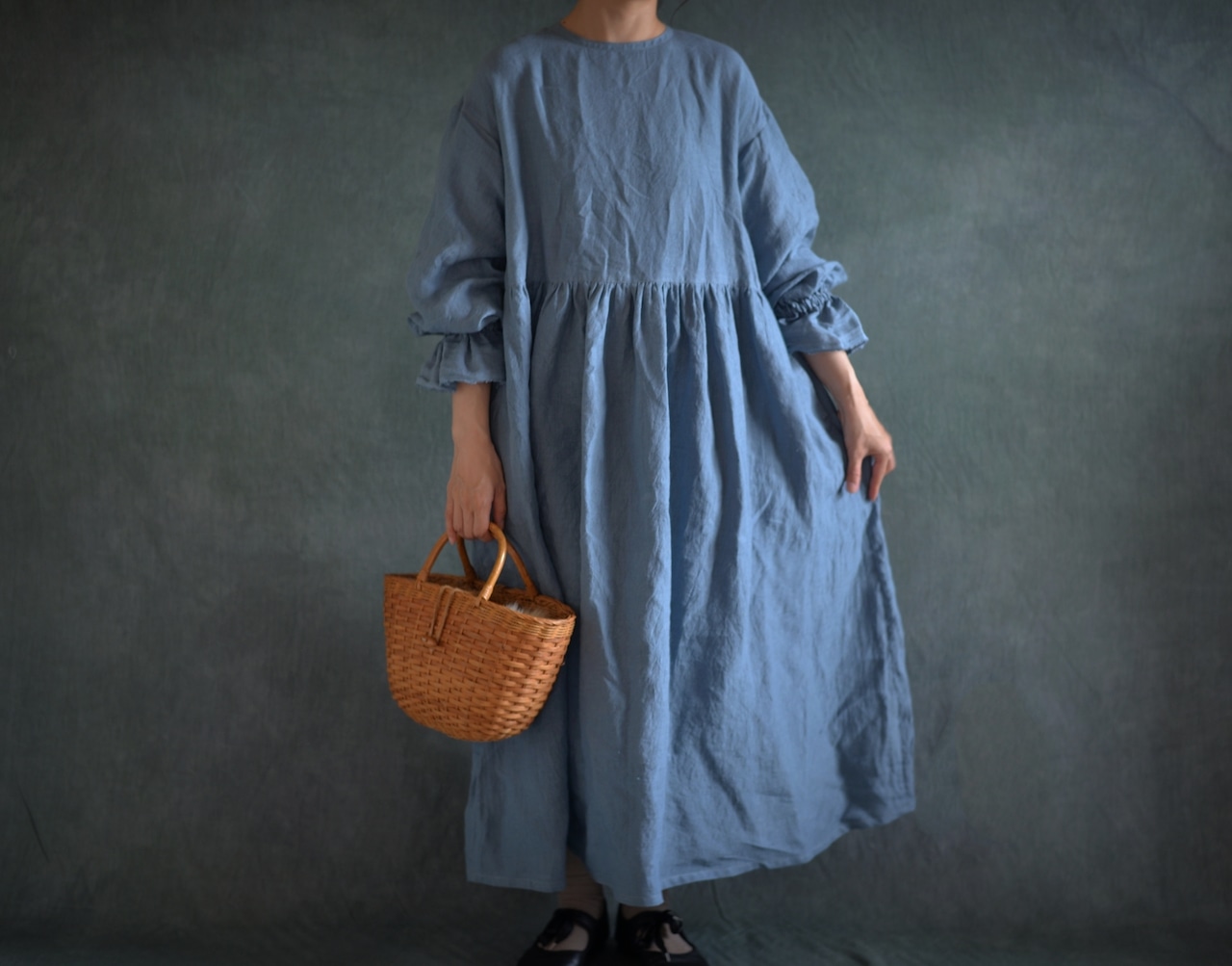 シワ感が表情を生む、天日干しリネンのワンピース。