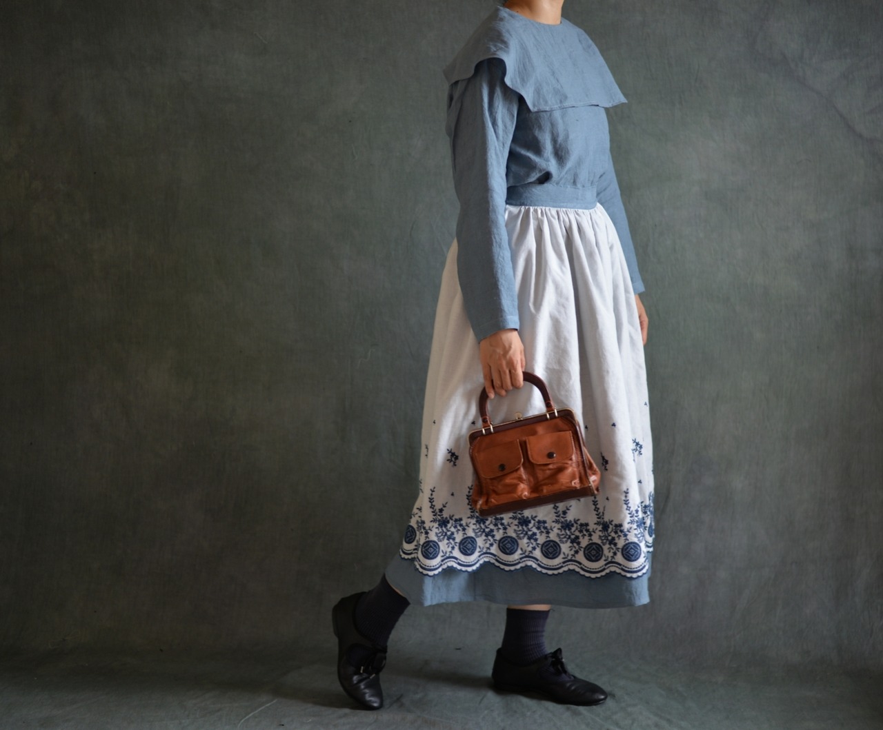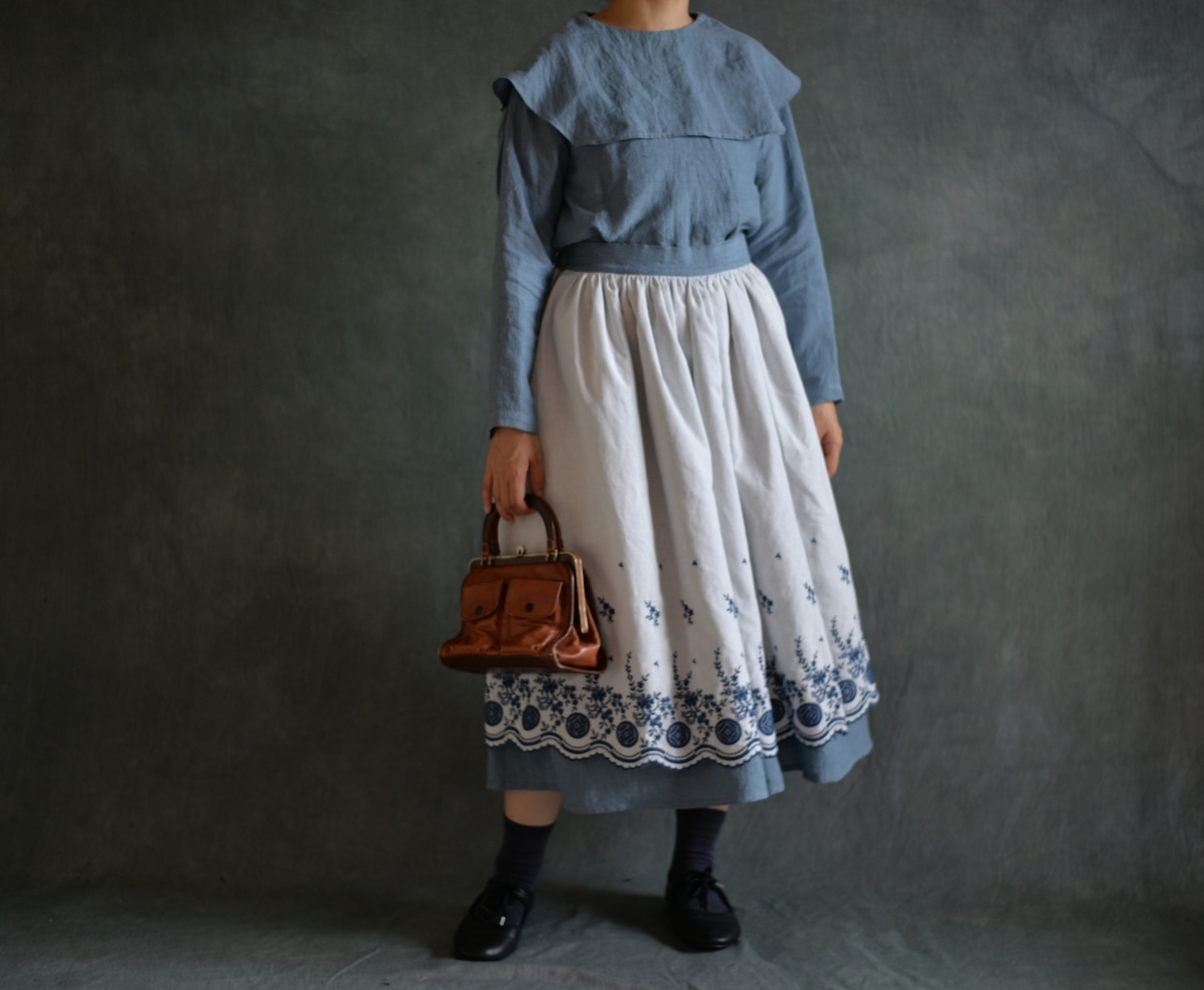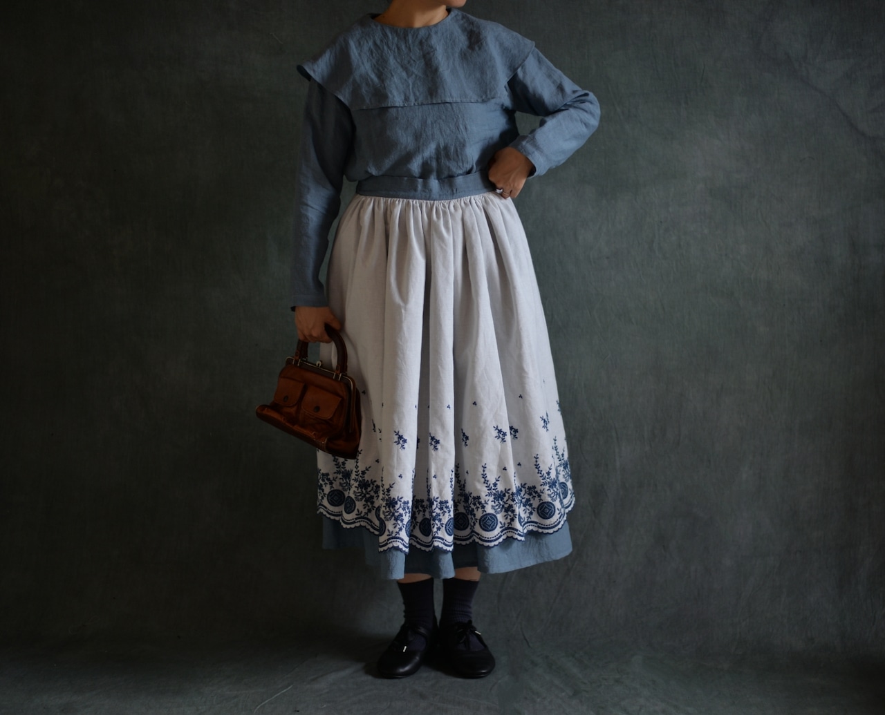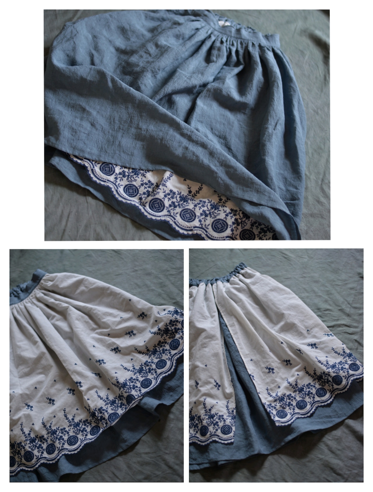 スカラップレースとリネンのリバーシブルスカートが仕上がりました。
