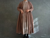 スタンドカラーのリネンギャザーワンピースです。
