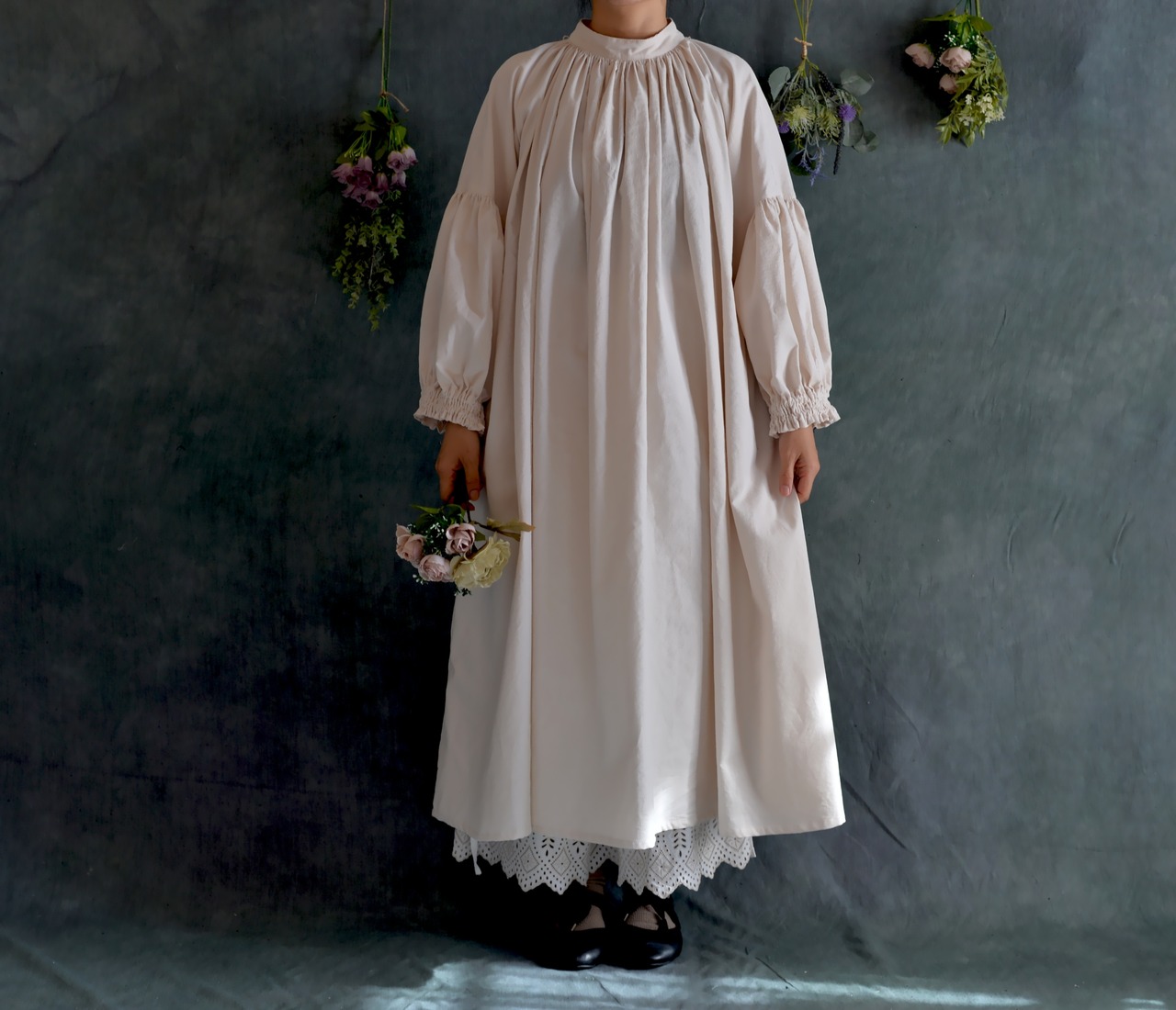 コットンシャツコールのギャザーワンピースが仕上がりました。