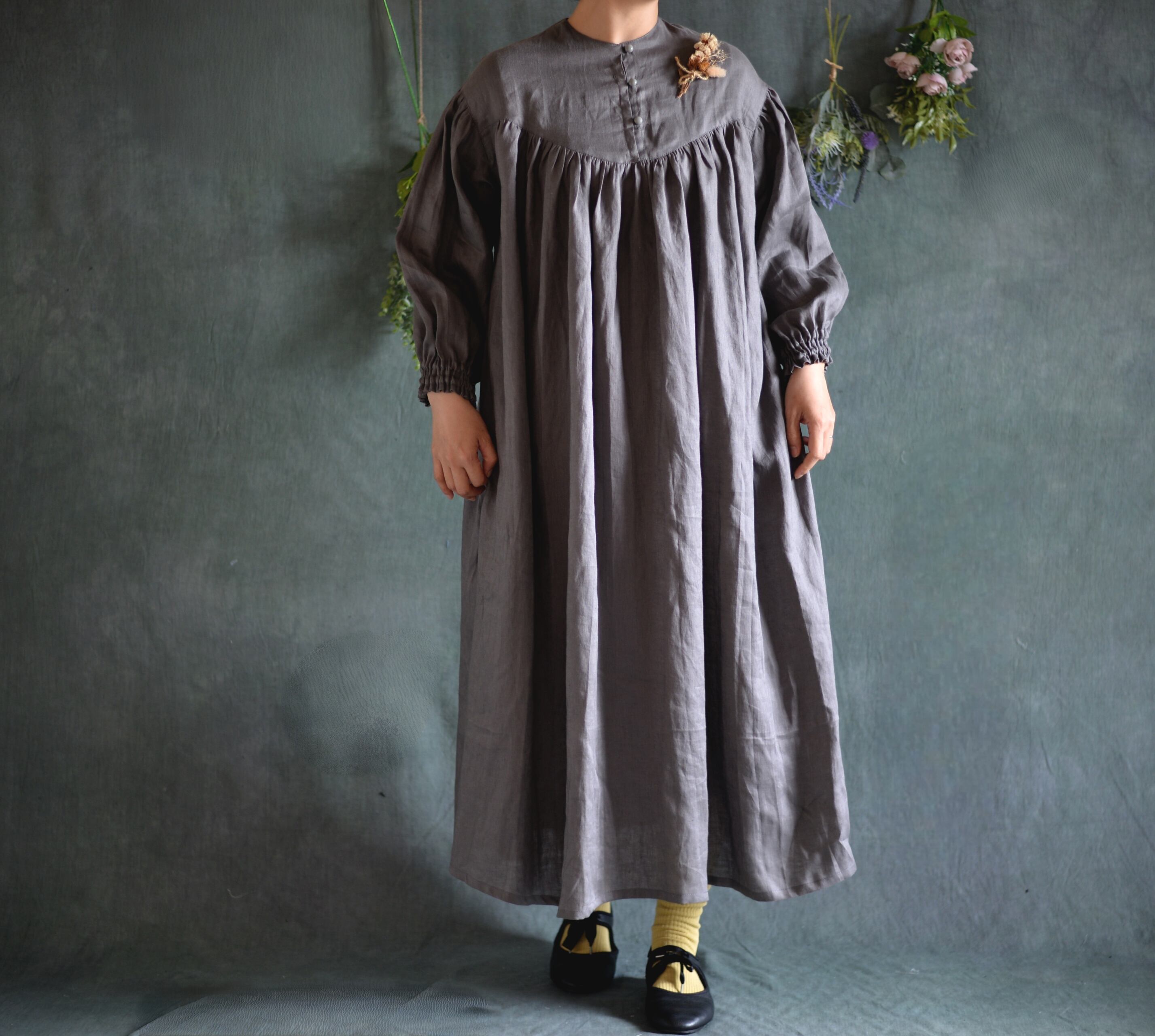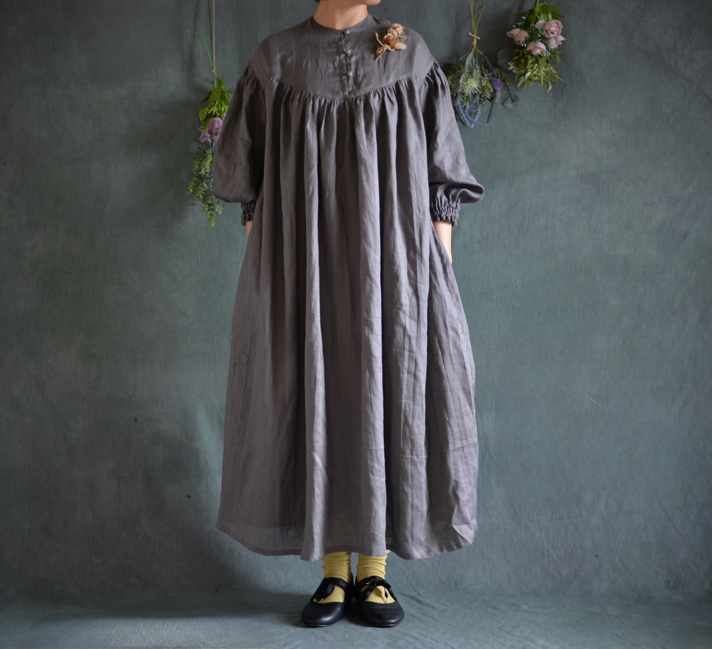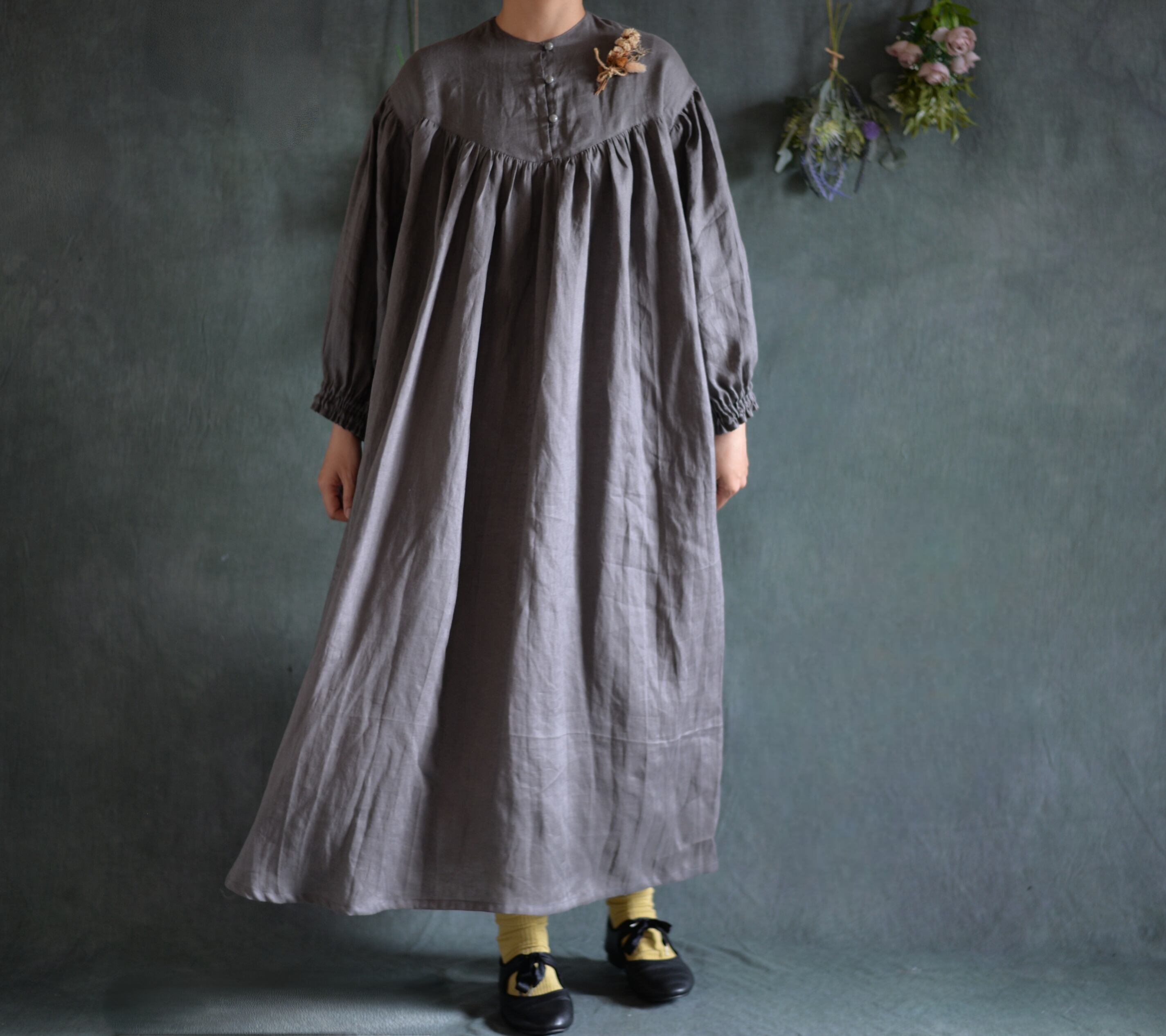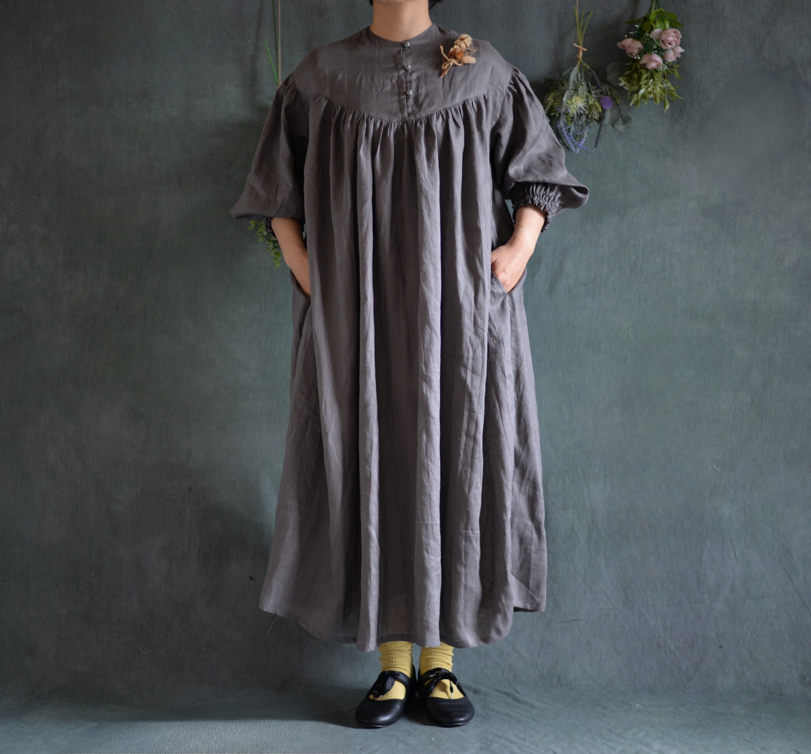 中薄手の柔らかリネンワンピースが仕上がりました。