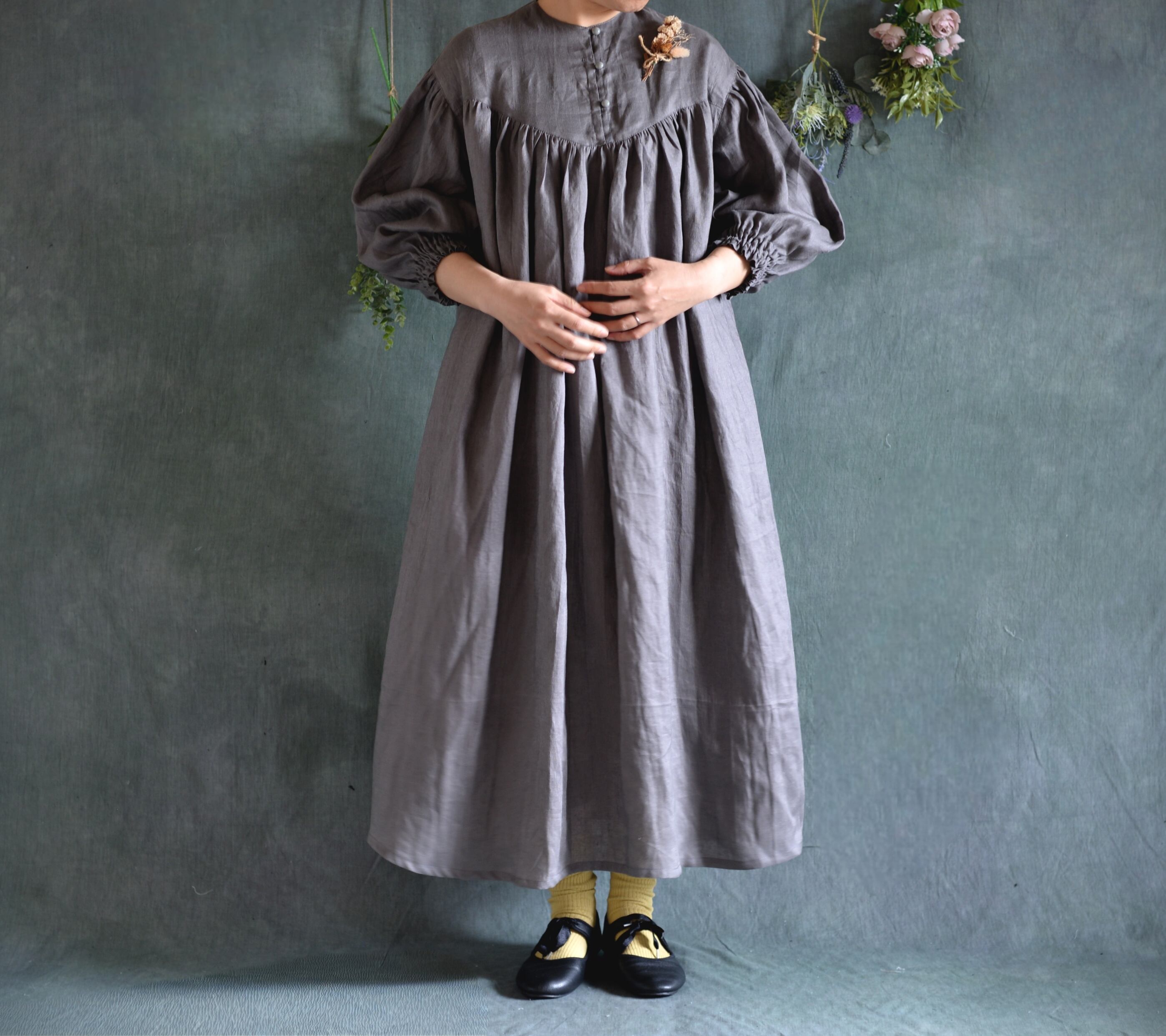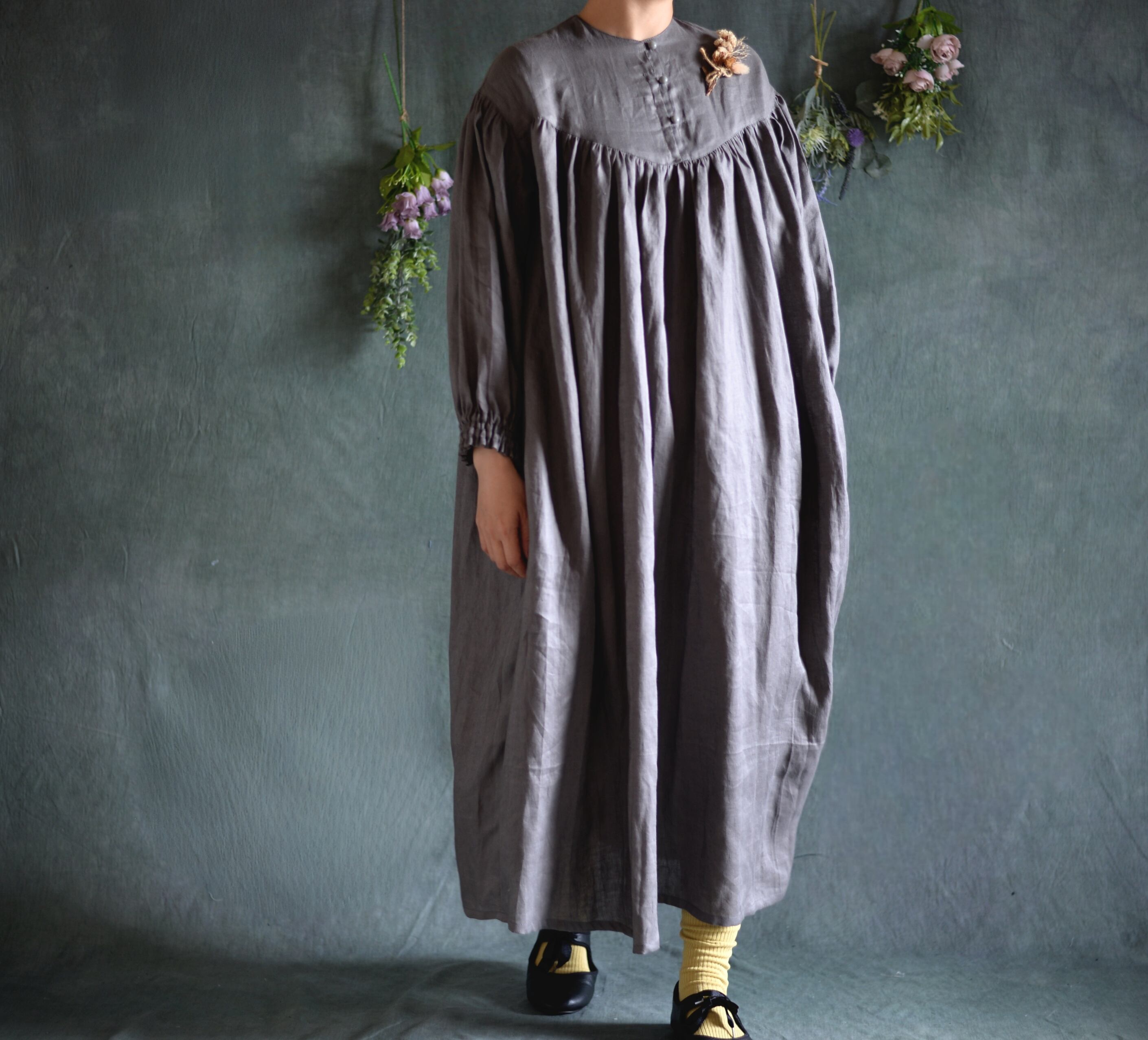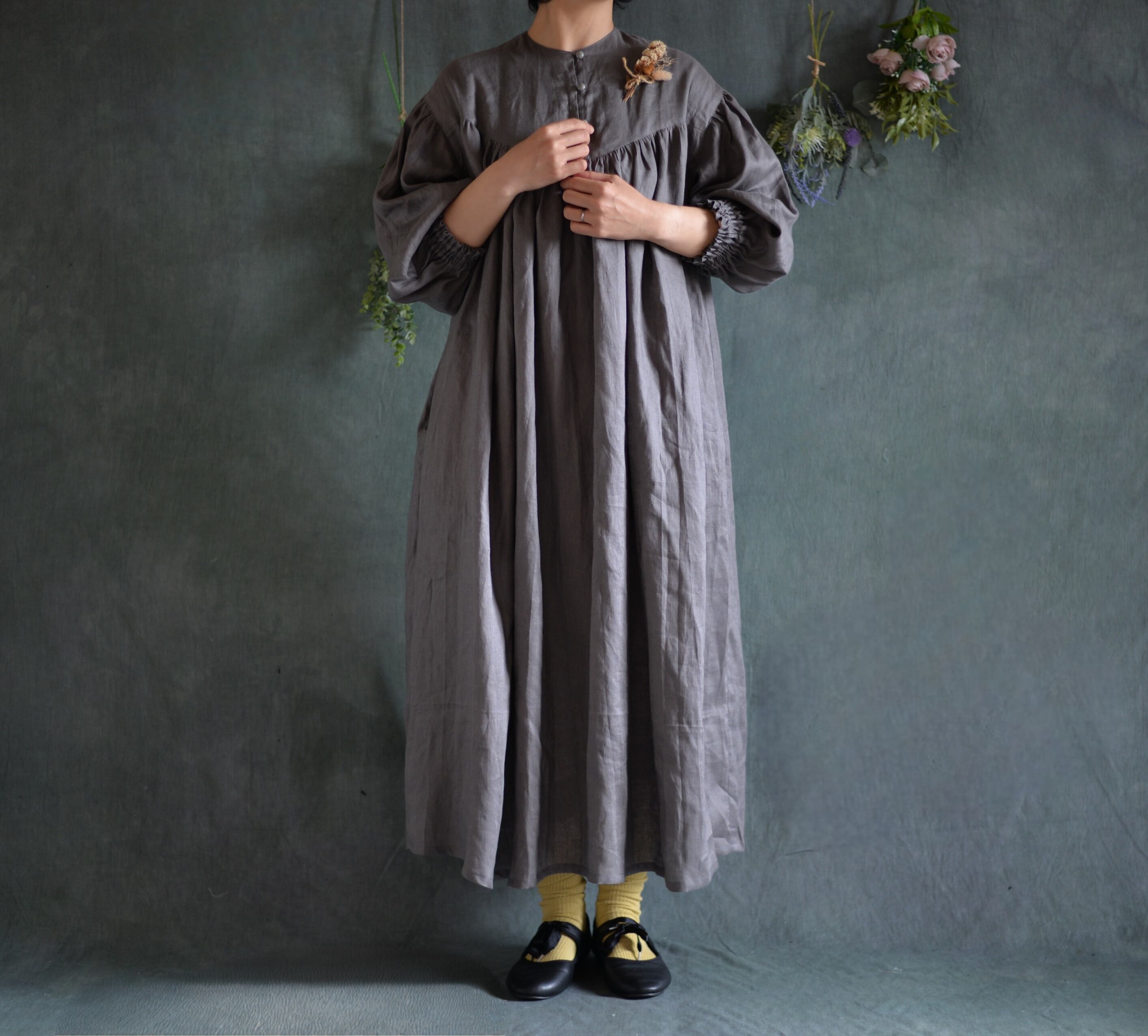 中薄手の柔らかリネンワンピースが仕上がりました。