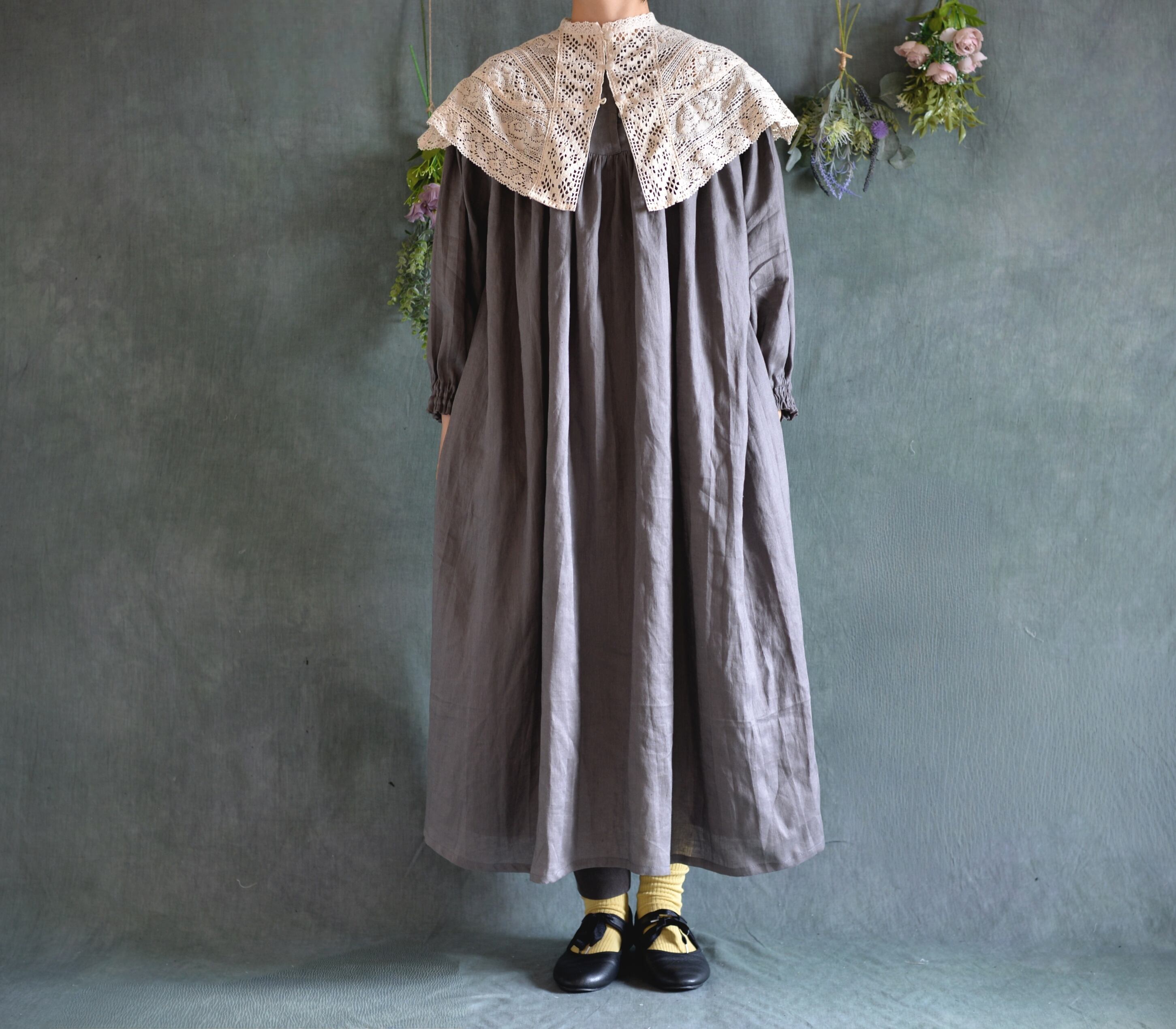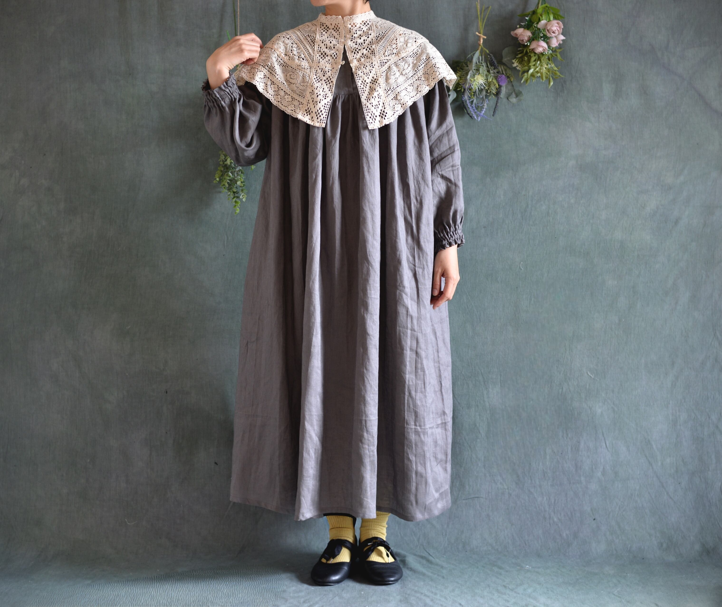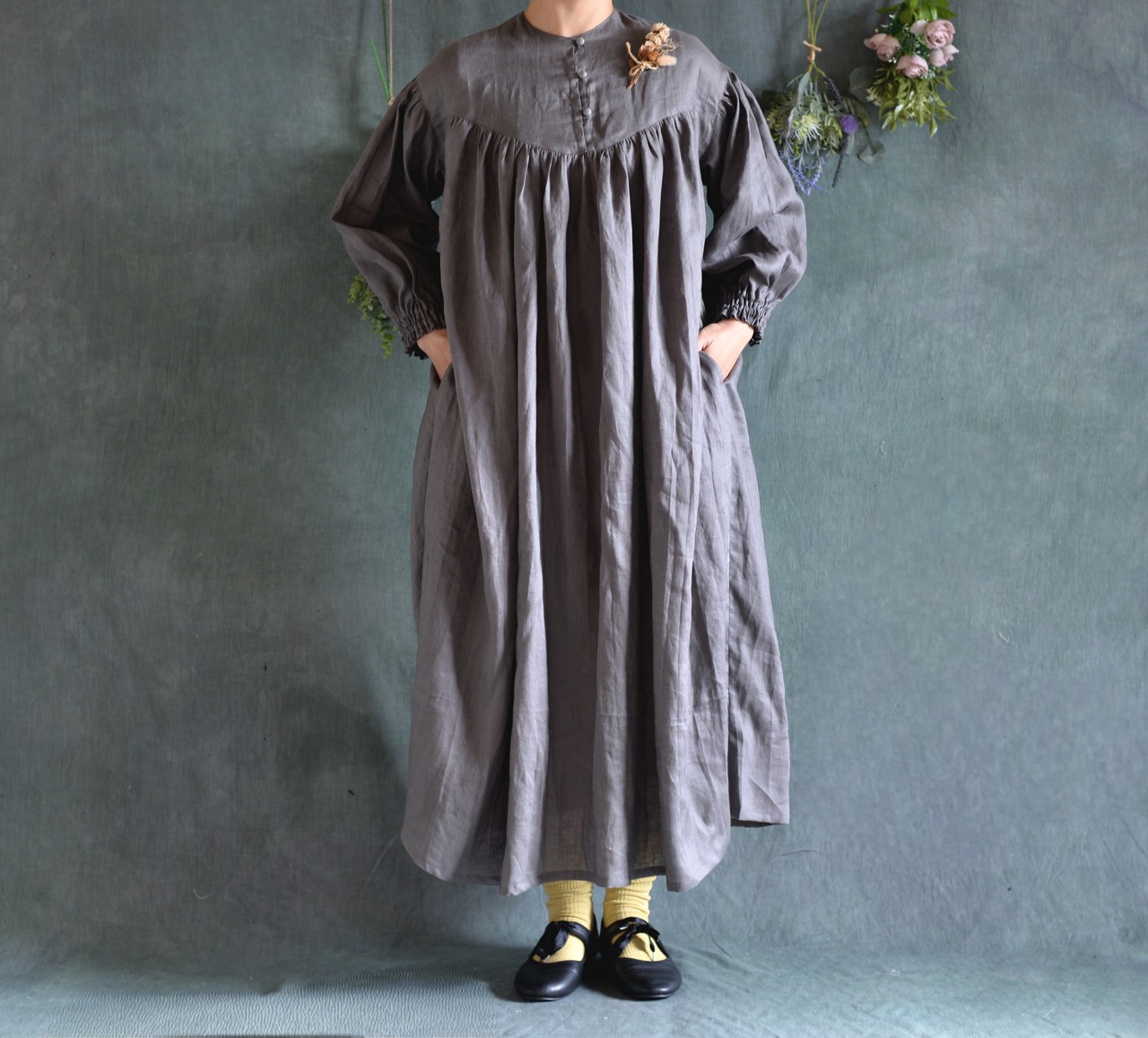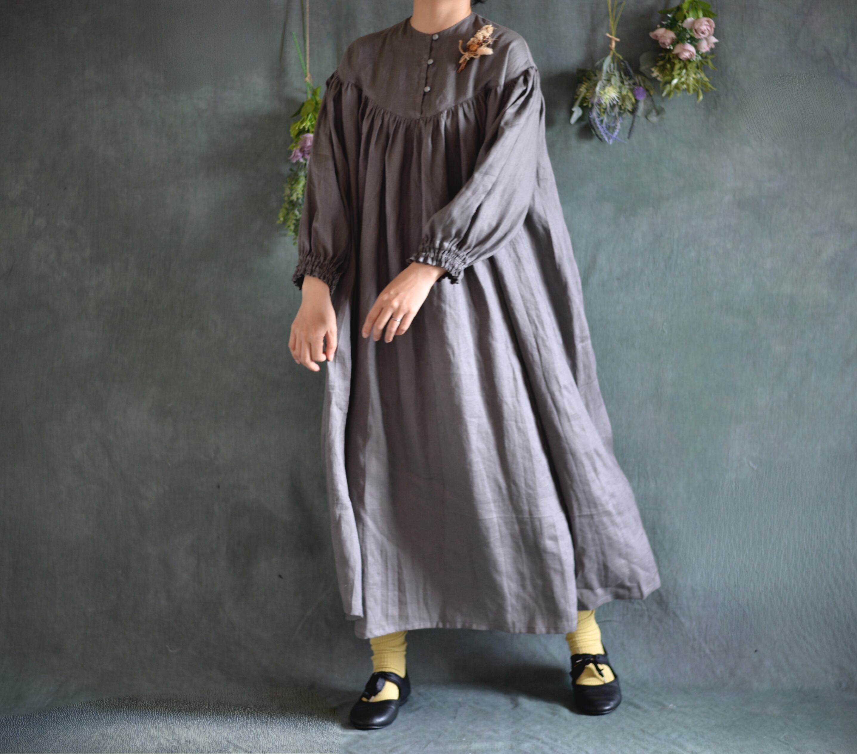 中薄手の柔らかリネンワンピースが仕上がりました。