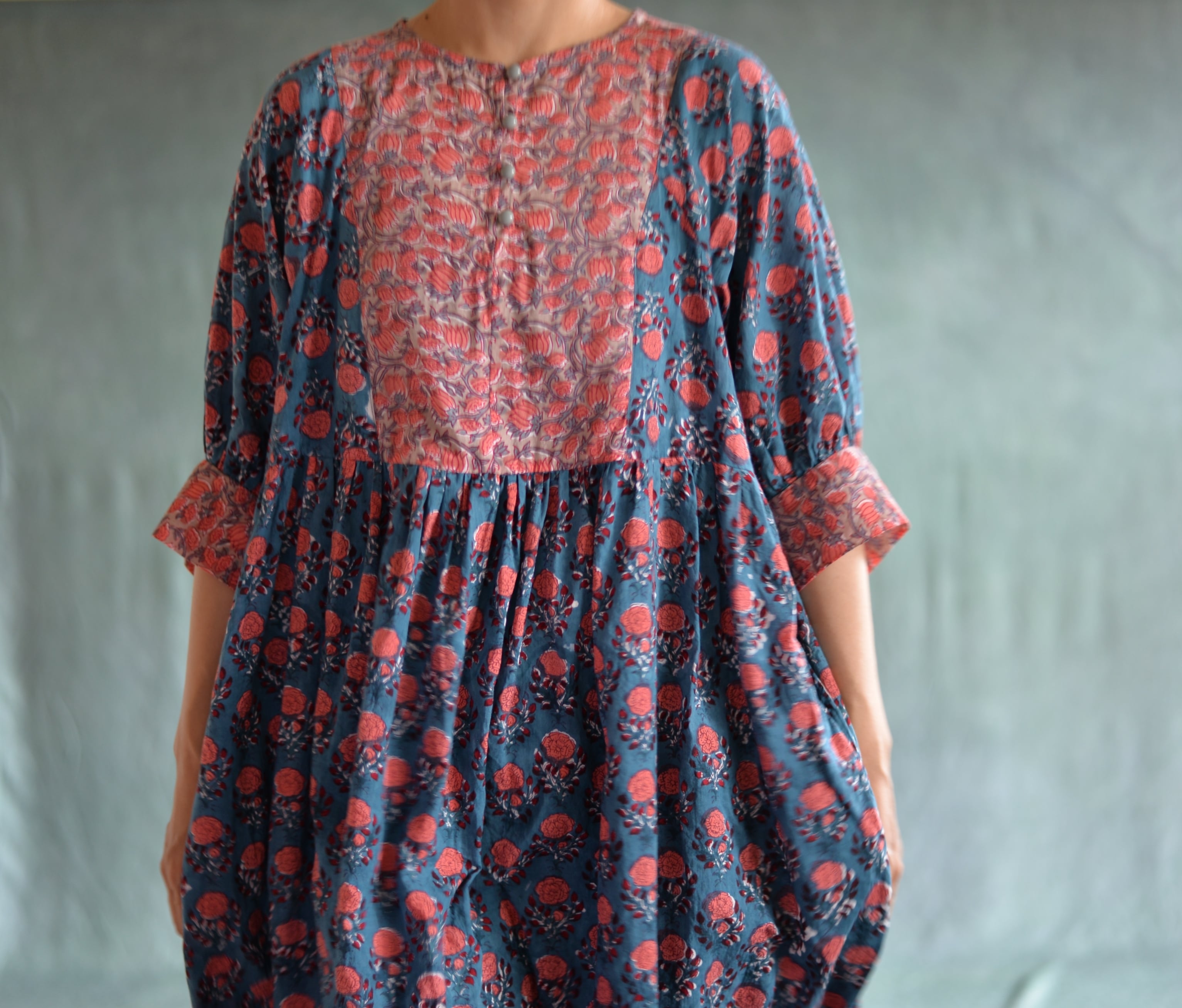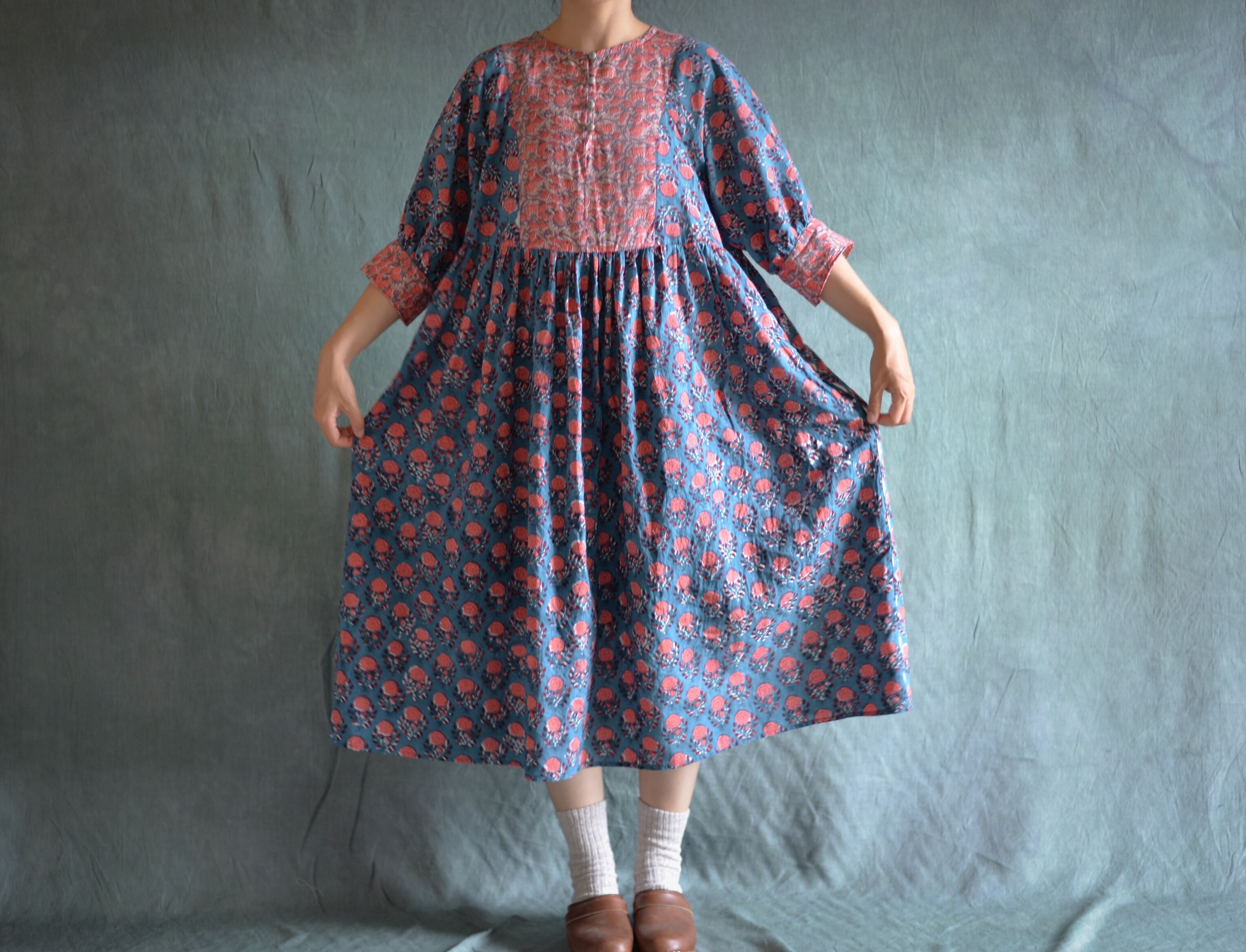 インド綿ブロックプリントのワンピースが仕上がりました。